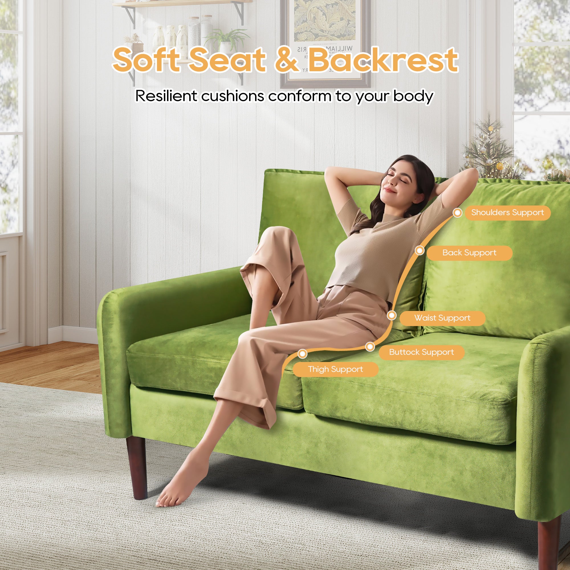 velvet sofa, army green couch, small space loveseat, modern living room furniture, compact apartment sofa, plush fabric sofa, easy clean couch, multiple cushion seating, loveseat for small spaces, round arm sofa, office sofa, children-friendly sofa, pet-friendly furniture