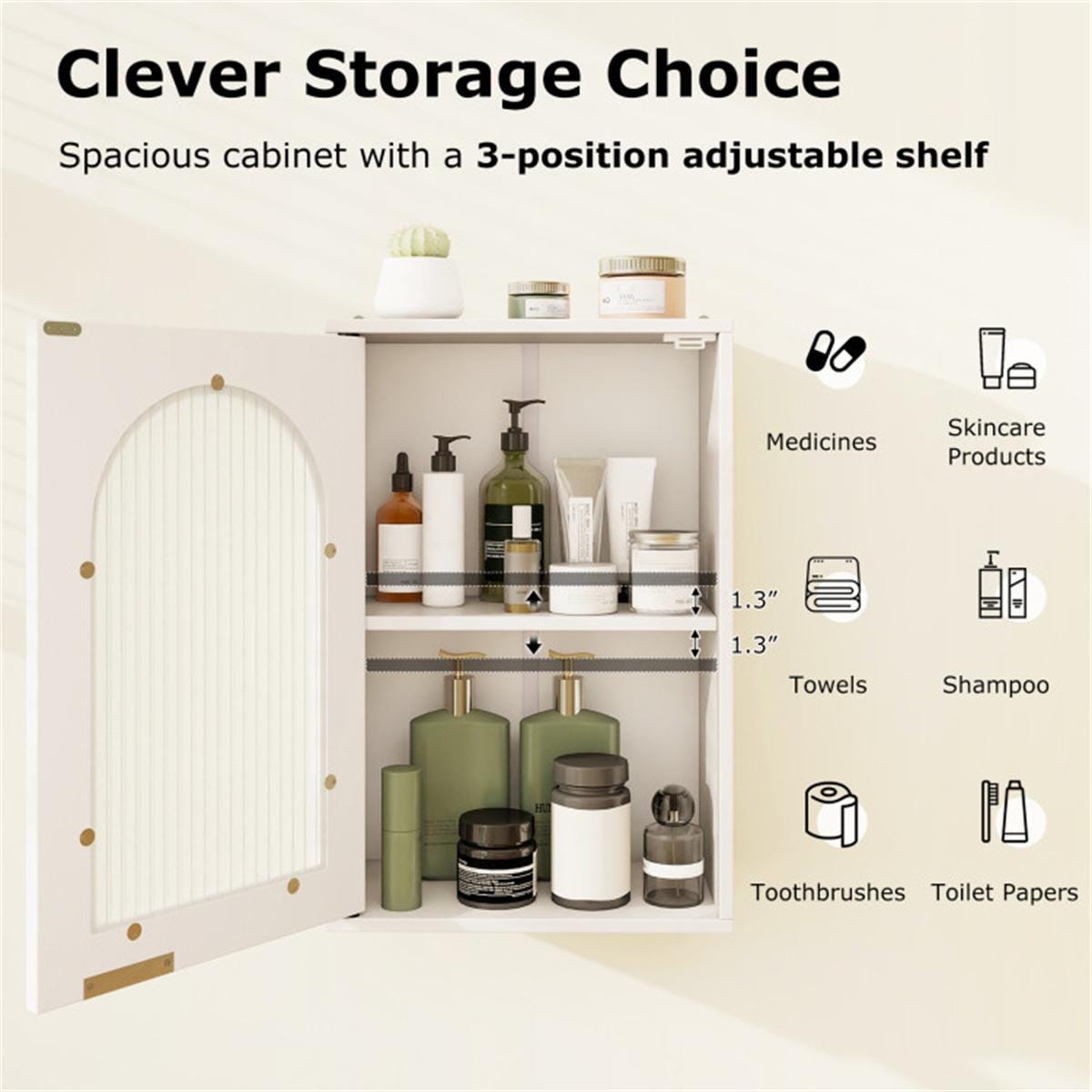 White Wall-Mounted Bathroom Medicine Cabinet | Wavy Tempered Glass Door Storage with Adjustable Shelves & Modern MDF Design White Wall-Mounted Bathroom Medicine Cabinet | Wavy Tempered Glass Door Storage with Adjustable Shelves & Modern MDF Design
